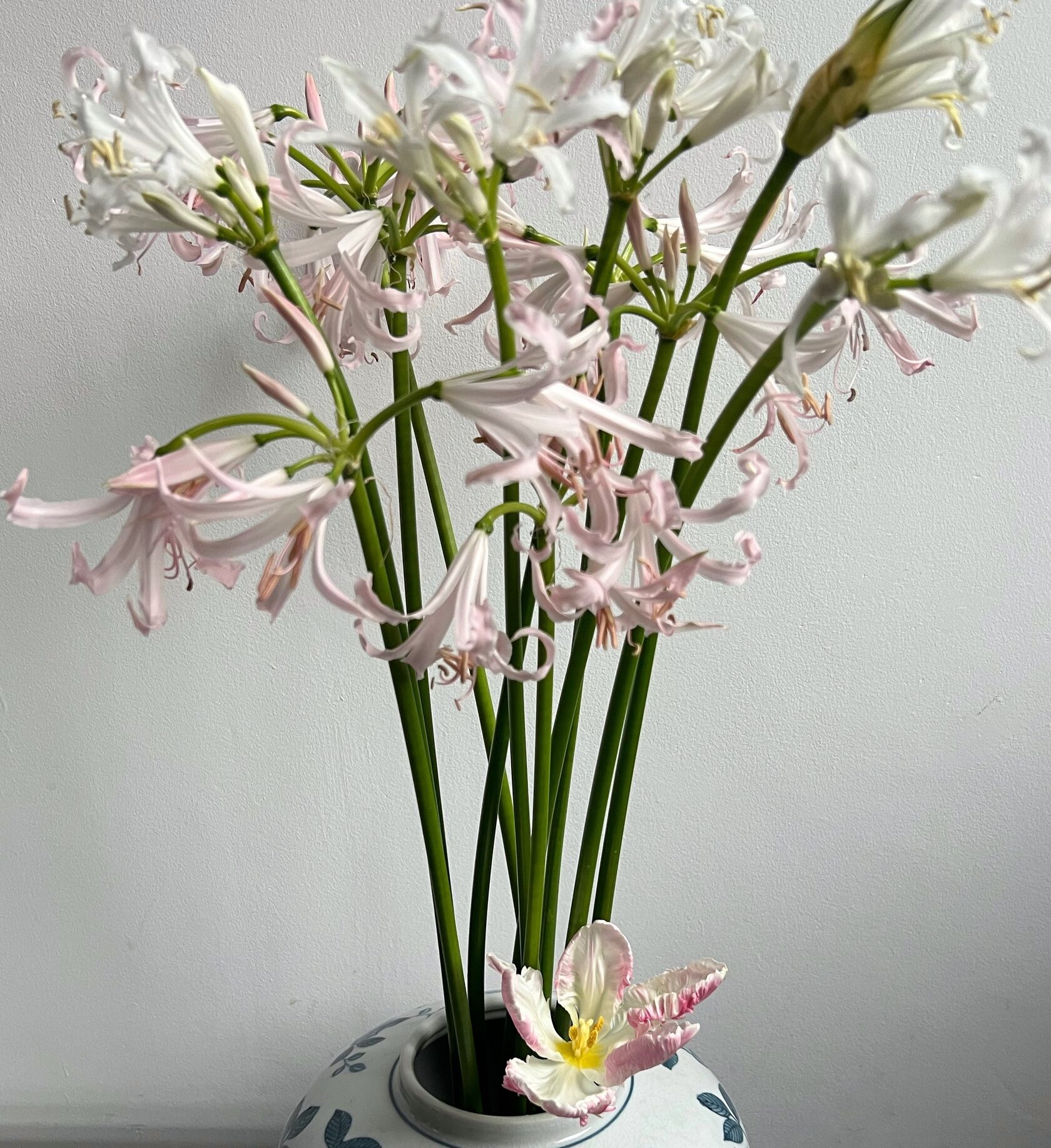 Нерине. Цветут наперекор всему. Их тонкие стебли и яркие лепестки — как искры в сером воздухе. Нерины добавляют динамику и ощущение жизни, когда палитра вокруг будто выдохлась. Они прекрасно смотрятся в сочетании с хризантемами или одиночно — в стеклянной вазе, где виден каждый изгиб стебля.